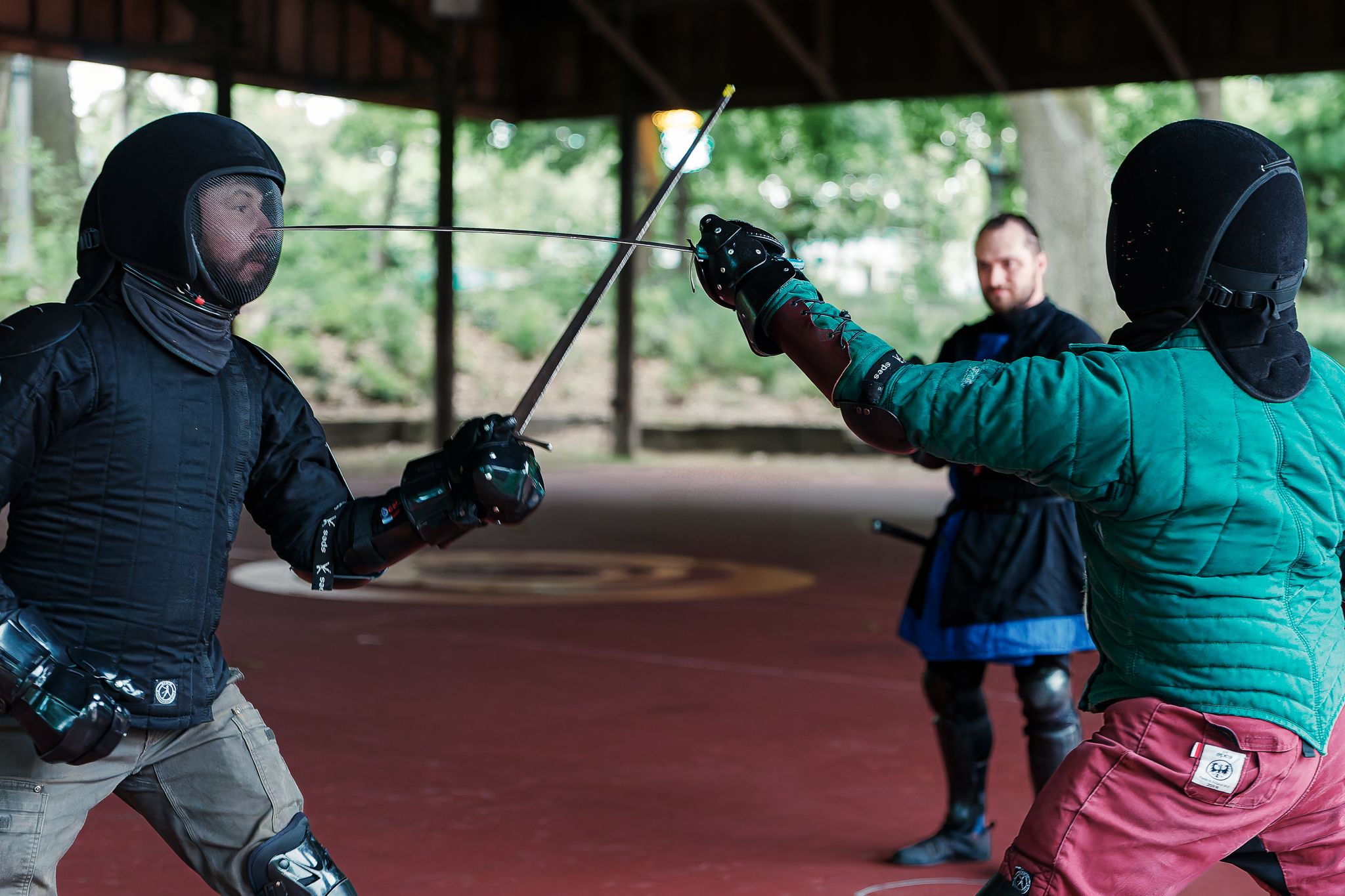 Our messer class is taught primarily referencing Leckuchner’s Kunst und Zettel Im Messer, but is oriented towards skill building and theory crafting using the messer as a medium to develop real-time tactical decision-making skills that can be applied to any HEMA weapon system.